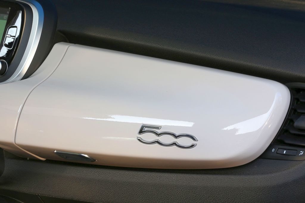 Glede na zasnovo kabine ima voznikova stran instrumentno ploščo razdeljeno v tri okrogle segmente: sredinski je večji in ima kovinsko obrobo, ki jasno spominja na kultnega Fiata 500 – gre za popolno kombinacijo retroestetike in sodobne tehnologije. Ob straneh sta enaka kvadranta z merilnikom hitrosti in števcem vrtljajev, na sredini je nastavljiv 3,5-palčni zaslon TCT, ki preprosto in sproti prikazuje informacije ter ponuja številne možnosti prilagajanja. Volanski drog ima nov športni volanski obroč z izboljšanim položajem rok in odličnim oprijemom, krasijo ga lični kromani vstavki ter opremljen je z gumbi za upravljanje radia, ki v vseh razmerah omogočajo natančno in sproščeno vožnjo. Vse skupaj je zaokroženo z optimalnim položajem prestavne ročice v sredinski konzoli in udobnim naslonom za roko spredaj. Osrednji segment armaturne plošče je opremljen tudi s tremi najpogosteje uporabljenimi gumbi, ki spominjajo na male ročice v starem Fiatu 500, neposredno nad njimi pa je petpalčni zaslon sistema Uconnect® (na voljo tudi z diagonalo 6,5-palca in navigacijskim sistemom). Proti dnu so zračne šobe in krmilniki klimatske naprave.
