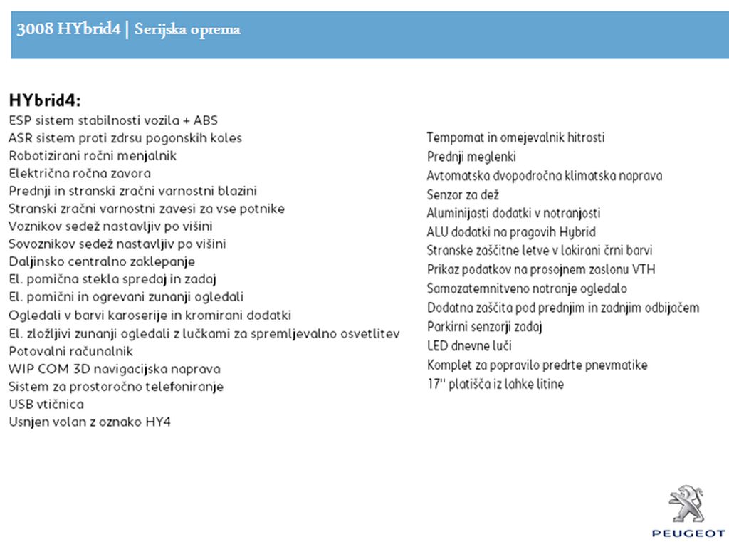 - Opcijska oprema Peugeot 3008HYbrid4 [229 kB]