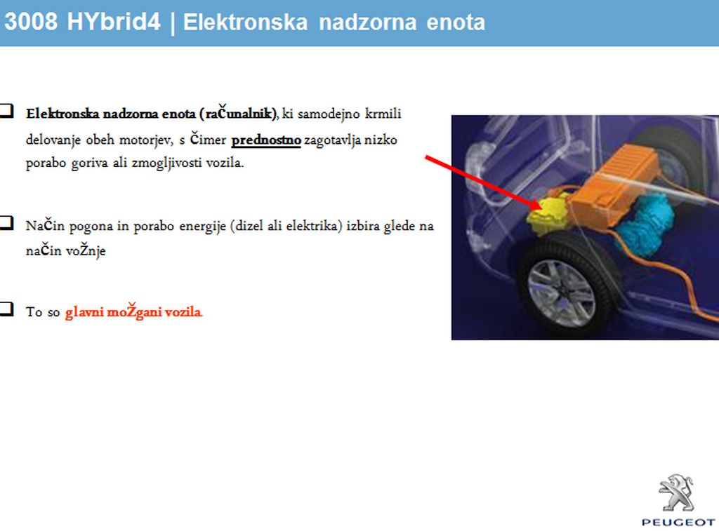 1966, ko so Francozi predstavili prvi velikoserijski izdelek te vrste, znan kot renault 16) in petvratnim enoprostorcem). Za to je zaslužna tehnologija HYbrid 4, ki predstavlja kombinacijo elektromotorja (delovna moč: 27 'konj' in 100 Nm motornega navora, največja trenutna moč: 37 'konj' ter 200 Nm motornega navora) in 2,0-litrskega HDi (163 KM pri 3750 vrt./min ter 300 Nm motornega navora pri 1580 vrt./min) agregata s skupno močjo 200 'konj' in 4-kolesnim pogonom, čeprav bo takšen peugeot