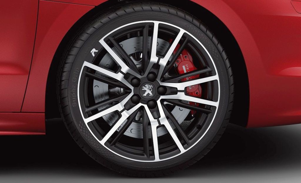 Posebna dvobarvna platišča v diamantni in mat črni, oblikovana v tehničnem in športnem stilu, so označena s črko R, ki je vrezana v zlitino. Zasnovana so bila tako, da je vanje mogoče namestiti izboljšano hlajenje novih, večjih zavor, katerih rdeča sprednja zavorna sedla imajo podpis Peugeot Sport. Veliko nepomično zadnje zakrilce, ki se odlično zliva z vozilom, zagotavlja boljšo aerodinamiko in obenem vizualno raztegne obliko karoserije ob pogledu od zadaj. Pri posebnem zadnjem difuzorju je ravno tako upoštevan gladek učinek, po katerem je prepoznaven zadnji del avtomobila RCZ, in ima vgrajeni dve opazni kromani in simetrični ustji izpušnih cevi, ki nakazujeta predelano izpušno linijo za boljše zmogljivosti in zvočno učinkovitost. Rdeč napis Peugeot na prednji okrasni maski in monogram R, ki ga najdemo tudi na zadnjem delu, zaokrožata zunanjo obliko RCZ R.