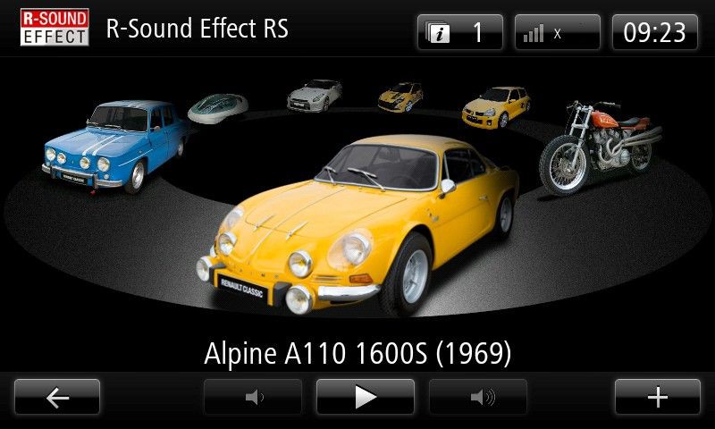 Zabavna aplikacija v povezavi s tablico R-Link lahko simulira zvok več zmogljivih motorjev in ga predvaja preko vgrajenih zvočnikov. Na voljo je sedem zvokov, od teh so trije namenjeni le Novemu Cliu R.S. (Alpine A110, R8 Gordini in Nissan GTR). Pri ustvarjanju zvoka algoritem upošteva število vrtljajev, položaj stopalke za plin in hitrost avtomobila, zaradi česar je končni rezultat osupljivo realističen. Določene parametre, kot je glasnost, je možno nastavljati preko zaslona sistema R-Link.
