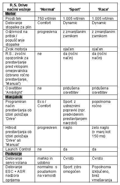 - moč in iztek krivulje moči pri vrhu območja vrtljajev za poudarjeno športen značaj avta.