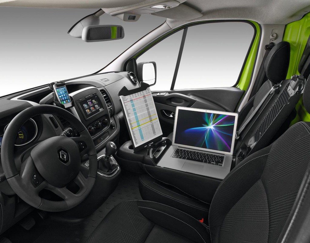 Ob preklopu naslona srednjega sedeža nad sedalo in dvigu pokrova na zadnji strani naslona se razkrije prostor za shranjevanje prenosnega računalnika. Tako lahko voznik svoj računalnik bodisi skrije pred radovednimi pogledi ali pa prostor uporabi kot podstavek za računalnik, ki ga je možno zasukati proti vozniku ali sovozniku. Ta prostor je dovolj velik, da sprejme večino prenosnih računalnikov z do 17-palčnim zaslonom. Ko je naslon srednjega sedeža preklopljen naprej, je možno na zadnjo stran vzglavnika navpično pritrditi trdo pisalno podlago, ki se jo da – tako kot prenosni računalnik – zasukati proti vozniku ali sovozniku. Tablica ima na vrhu sponko, ki omogoča pričvrstitev dokumentov formata A4. Voznik ima tako lahko pred seboj opis poti ali seznam naslovov za dostavo, ki kljub temu ne okrni preglednosti navzven.