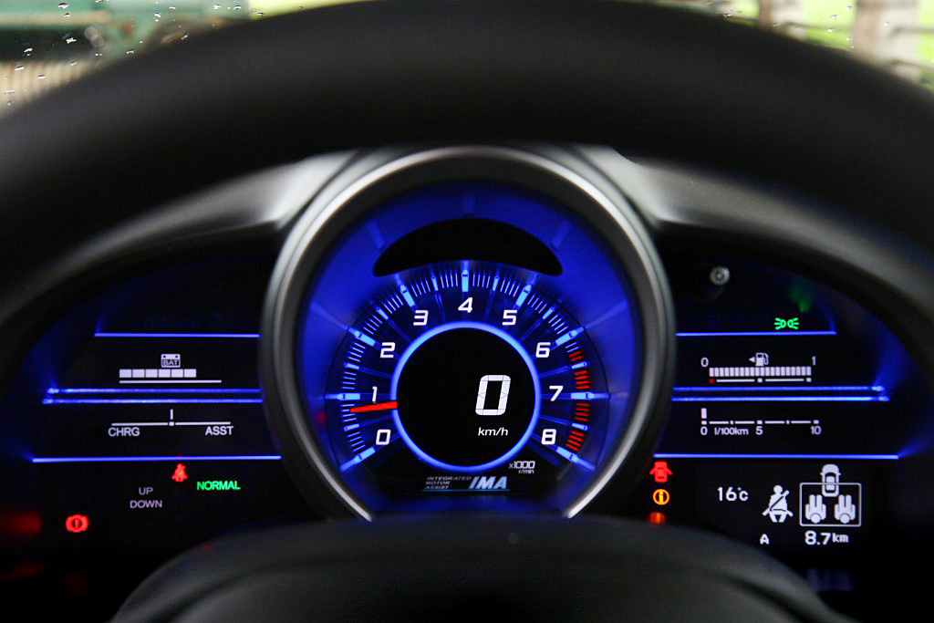 S samim jazzom pa ima kar nekaj skupnega tudi CR-Z. Bencinski motor je že od tam, lahko pa se pohvali s posamičnim zapiranjem ventilov. Dodali so mu še majhen in predvsem zelo tanek električni motor, ki ga imenujejo IMA (Integrated Motor Assist). Skupaj dosežeta 91 kilovatov pri 6000 ter 174 Nm navora pri 1500 vrtljajih (kot civic 1,8) in porabita v povprečju le 5 litrov goriva. Sam bencinski agregat sicer pridela 84 kW pri 6100 ter 145 Nm navora pri 4800 vrtljajih, električni pa 10 kW pri 1500 in 78,4 Nm pri 1000 vrtljajih. Logično, da skupna moč in navor nista le seštevka vrednosti, saj imata motorja različni krivulji, ki pa se odlično dopolnjujeta, zato je za hibridne sisteme bencinski motor veliko bolj primeren. Pri nizkih vrtljajih mu namreč primanjkuje moči, ki jo tako lahko lepo kompenzira dodatni električni motor. Žal ne deluje samo na elektriko, ker se je inženirjem zdelo bolj smiselno ustvariti tri režime delovanja sistema; od varčevalnega do športnega. Obenem je tudi edini tovrstni avtomobil, ki ima ročni menjalnik.