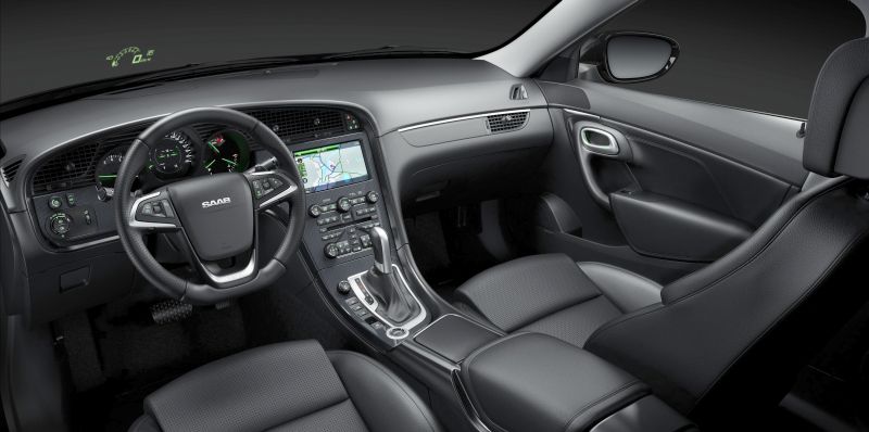 Notranjost nove Saabove admiralske ladje preveva skandinavska šola oblikovanja, ki je ob srečanju s tradicijo izdelave letal prinesla bolj vozniško usmerjeno zasnovo v stilu prve generacije BMW-jeve trojke, ker je sredinski del obrnjen bolj v smeri voznika. Uporaba kvalitetnih materialov in visok standard izdelave pa poudarjajo premium značaj te znamke, ki po modelih z oznakami 92, 93, 95 in 96 ni nikoli več izdelala 'avtomobila za mase', temveč se je z osnovno in povečano ponudbo vseskozi