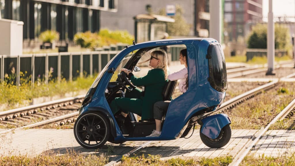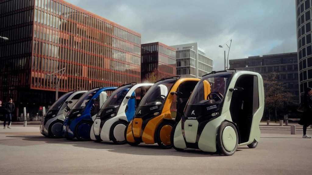 Tega se več kot očitno zavedajo tudi ustanovitelji nemškega start up podjetja Hooper Mobility, ki ponujajo prebivalcem mestnih središč njihov dejansko kompaktni 3-kolesni koncept oblikovnega križanca med avtomobilom in električnim kolesom z imenom hooper. Takšen 3-kolesnik (dolžina: 212 cm, širina: 105 cm, višina: 149 cm, neto masa: 140 kg, uporabna nosilnost: 160 kg) lahko prevaža 2 odrasli osebi ali pa voznika in dva otroka, poleg tega je potnikom na voljo tudi 125-litrski prostor za tovor (300 litrov v primeru 'cargo' različice …), ki se skriva v zadku vozila.
