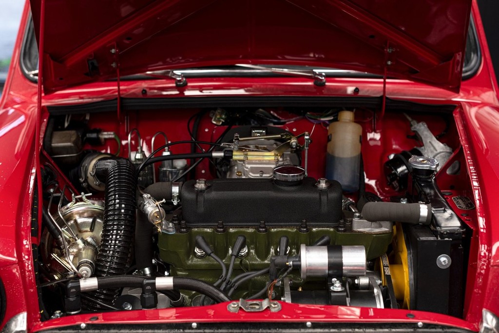 Restavriranje vozila je prineslo tudi povsem obnovljeno in dodatno antikorozijsko zaščiteno karoserijo in vgradnjo Webasto strešnega okna, ker Britanci v ta avtomobil pač niso skušali stlačiti klimatske naprave. Namesto tega so raje zamenjali vso zavorno napeljavo, čeprav so ob tem ohranili prvotne, seveda obnovljene komponente (zavorni diski spredaj, bobni zadaj …), zamenjali pa so tudi izpušni sistem in pa sestavne dele podvozja in vzmetenje (KAD & Bilstein), ki je v tem miniju nastavljivo. Novo je tudi vbrizgavanje goriva, poleg tega so poskrbeli tudi za boljši dovod in hranjenje pogonskega goriva. Na koncu so iz 1275-kubičnega atmosferskega štirivaljnika iztisnili poštenih 66 kW (90 KM) pogonske moči, čeprav ob tem govorimo o avtomobilčku (dolžina: 3.050 mm, širina: 1.410 mm, višina: 1.355 mm), ki ima za današnje čase nepojmljivih 685 kilogramov neto mase. Današnji osnovno motorizirani 'mini' cooper (115 kW/156 KM) se lahko 'pohvali' s 1.355 kilogrami neto mase …