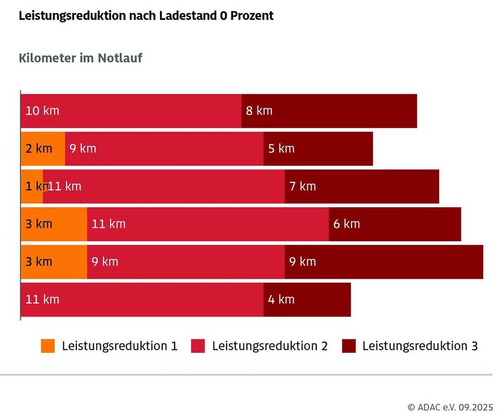 Za popolno primerjavo so Nemci izbrali 6 primernih kandidatov (volkswagen ID.3, tesla model Y, KIA EV6, volvo EX40, BYD seal in nio EL6). Na koncu so ugotovili, da je 'opozorilna dramaturgija' pri vseh testiranih primerkih dokaj podobna. Ko se je zaloga shranjene električne energije v akumulatorjih začela približevati nultemu stanju, so vsi testni vozniki v šestih avtomobilih začeli prejemati optične opozorilne signale v obliki tekstovnih sporočil na območju armaturne plošče, pri nekaterih vozilih pa se prikazovalnik zaloge električne energije obarva v oranžno barvo. So pa ob tem opazili, da imajo avtomobili različne tolerance glede tega, kdaj se prižgejo prva opozorila o skoraj izpraznjenih akumulatorjih.