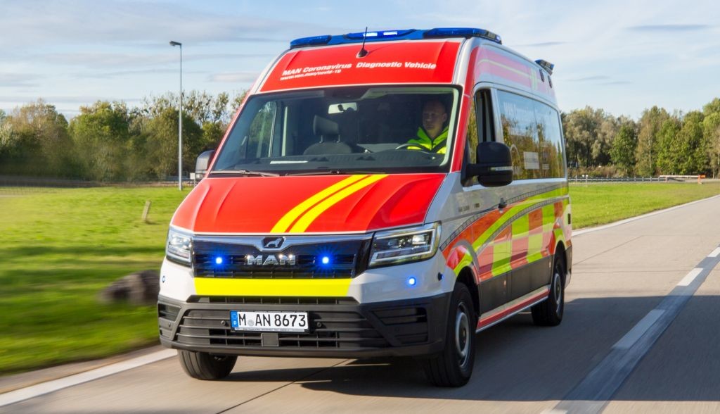 MAN Truck & Bus je razvil v sodelovanju s priznanimi strokovnjaki iz zdravstvenega področja edinstveno in inovativno diagnostično vozilo, ki se lahko varno in hitro uporabi pri odkrivanju okužb s SARS CoV-2 v žariščih. Premični laboratorij je izdelan na osnovi vozila MAN TGE. Mobilni laboratorij, ki lahko opravi na dan več kot 500 testov je idealno prilagojen odkrivanju okužb na terenu, če obstaja utemeljen sum za njihovo širitev – na primer v domovih za starejše, šolah, podjetjih in drugih ustanovah. S pomočjo MAN-ovega diagnostičnega vozila se lahko s ciljnimi ukrepi prekine veriga razširjanja okužbe.