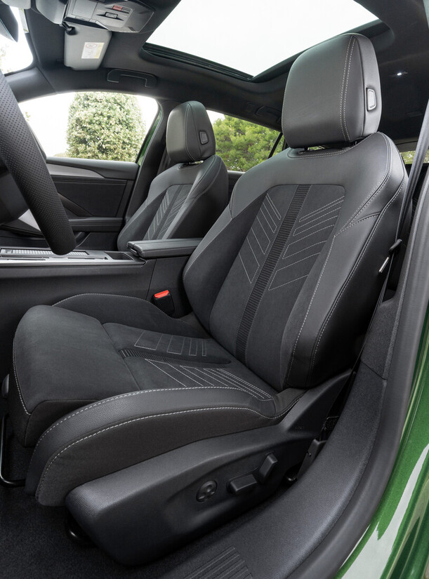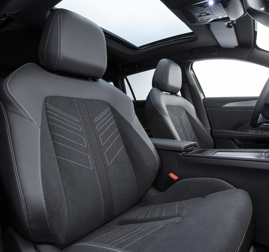 Kupci lahko udobje še nadgradijo z večnastavljivimi, AGR-certificiranimi Intelli-Seat sedežemi za voznika in sovoznika, z oblazinjenjem ReNewKnit™, večstopenjskim ogrevanjem, elektro-pnevmatsko ledveno oporo, masažno in spominsko funkcijo. Oblazinjenje iz enotnega materiala z videzom semiša je 100 % reciklirano in ga je mogoče ponovno reciklirati, brez potrebe po ločevanju materialov. To zmanjšuje ogljični odtis in količino odpadkov.
