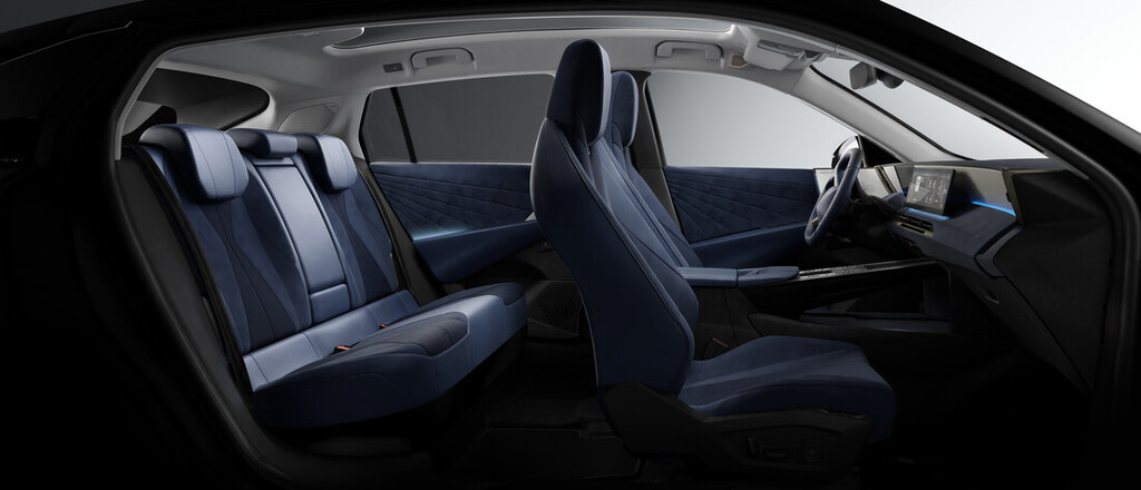 Kombinacija notranjosti v tkanini DS sive barve Perle in modre barve Éternel je dvobarvna kombinacija, ki združuje nežno sivo barvo Perle in prodorno modro barvo Éternel. Prispeva k umirjenemu in svetlemu vzdušju. Tkanina DS vsebuje biserno nit v mavričnem odtenku, ki poskrbi za eleganten in prefinjen biserni učinek. V potniškem prostoru ta svetla barva ustvari harmonični kontrast z modro Éternel.