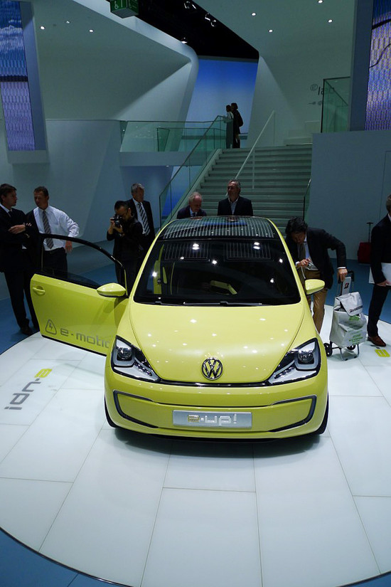 Pri VW e-up gre za popolnoma električni avtomobil, ki svojo moč črpa iz litij-ionskih baterij, premore pa 40 kW (54 KM) in nakazuje razvoj malih mestnih avtomobilov v VW. Pospešek, ki sicer niti ni tako pomemben, znaša 11,3 sekunde za dosego 100 km/h, največja hitrost pa 135 km/h. Pravijo, da bi lahko zapeljal na trg že leta 2013. Po drugi strani pa kaže na novo serijo malih vozil up, katerih cena se bo s klasičnimi trivaljnimi motorji pričela pri 8.500 €.