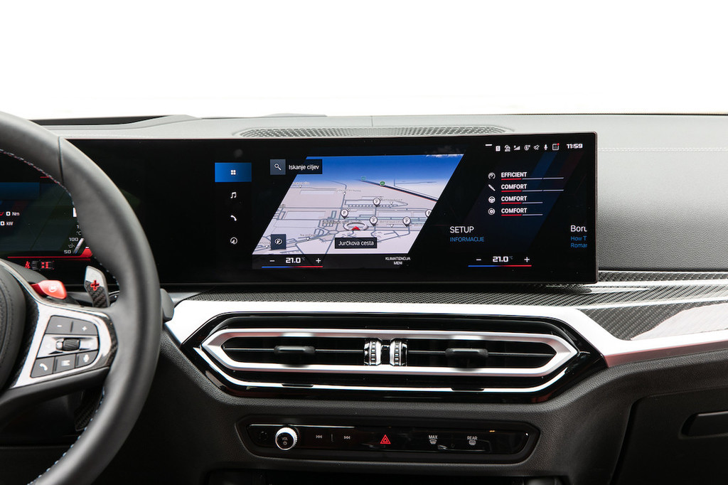 S prenovo so modeli serije 3, tudi najbolj zmogljivi, dobili novo zasnovo notranjosti z velikim vodoravnim panelom z dvema zaslonoma, pri čemer se je upravljanje klimatske naprave preselilo na osrednji zaslon. In čeprav je za izbiro nastavitev (predvsem za vozno dinamiko) še vedno na voljo nekaj klasičnih gumbov na volanskem obroču in sredinski konzoli, se na zaslonih preprosto dogaja preveč. Grafika instrumentne plošče, ki se je popolnoma oddaljila od klasičnih merilnikov, je nepregledna in