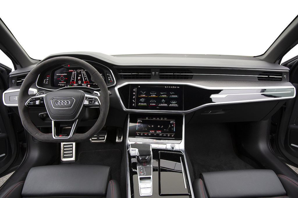 kabina, ki se od tiste pri različicah z oznako A6 razlikuje le po bolj športnih sedežih, nekaj drugih športnih detajlih, kot so rdeči šivi, predvsem pa po alkantari na volanskem obroču in na prestavni ročici. To sicer pomeni, da po vzoru klasične šestice prinaša upravljanje multimedijske in klimatske naprave z zaslonom na dotik, kar nas nikjer ne navdušuje in se nam pri tako dinamično naravnanem avtomobilu zdi še manj primerno. Toda ob tehnično tako odlični celoti mu lahko to oprostimo.