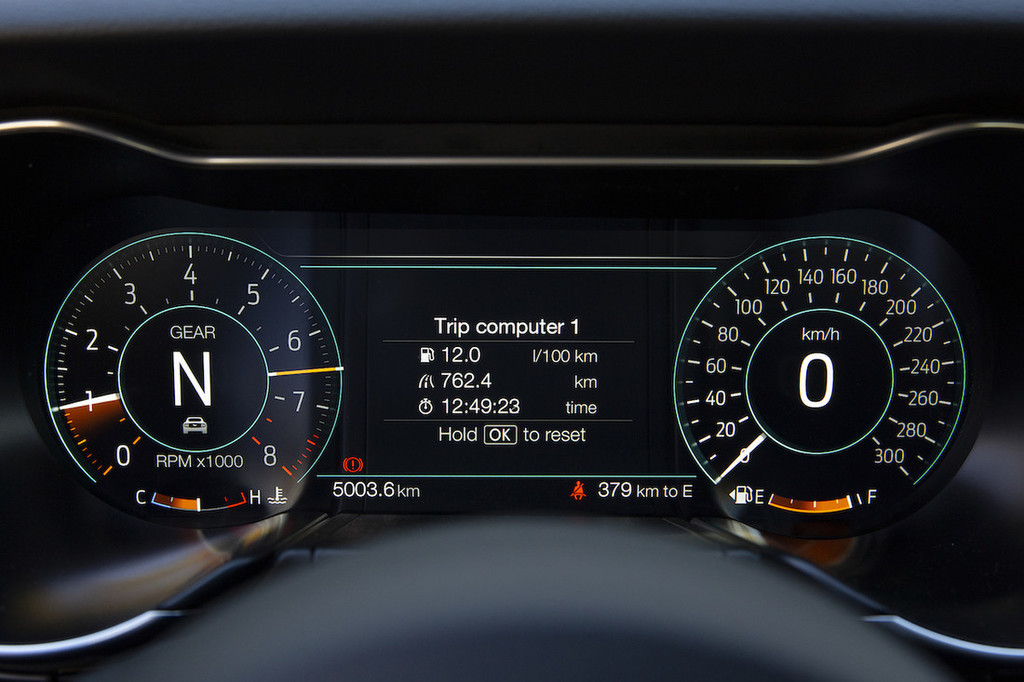 velikimi in preglednimi ikonami je precej preprost, funkcionalnost pa razmeroma dobra (poleg radia DAB ima tudi CD-predvajalnik!). Zaslon je tudi pred voznikom (premera 30,5 centimetra), ima jasno grafiko in je lahko berljiv ter nudi možnost različnih prikazov. Daleč najlepši in najboljši je videz klasičnih analognih merilnikov, druge digitalne informacije so v stilu igralnih konzol moje mladosti. Za večino funkcij še vedno skrbijo klasična stikala, vključno z vrsto klecnih na dnu sredinske