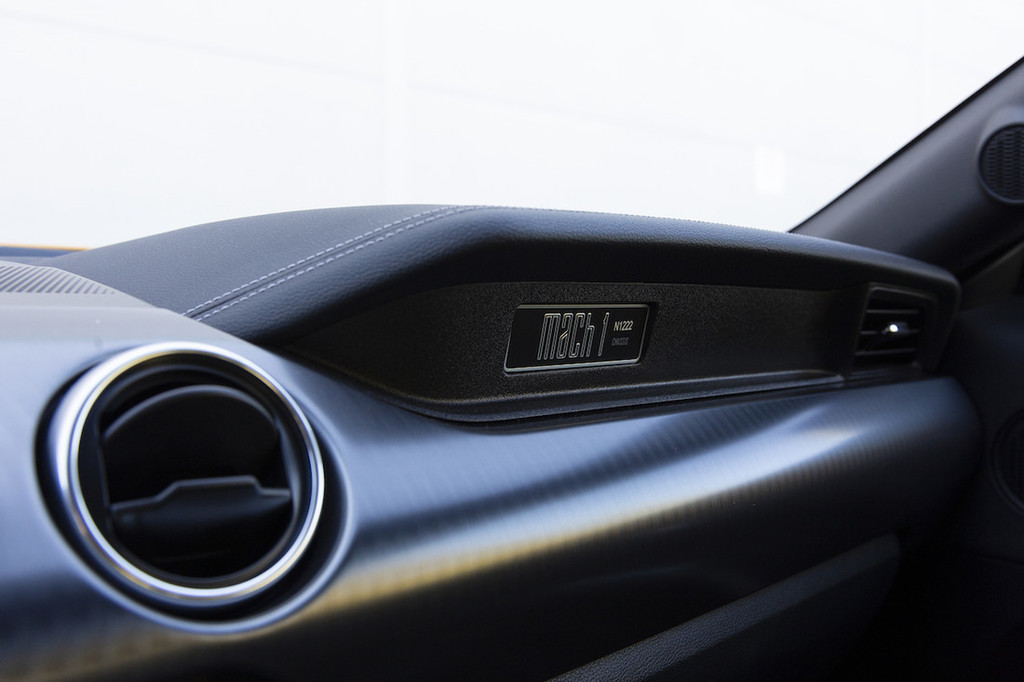 Še najopaznejša sta dva dodatna vstavka v sprednji maski za morebitno kasnejšo vgradnjo dodatnih žarometov. Mustang je sicer že sam po sebi oblikovno tako ali tako razpoznaven avto, še bolj pa izstopa s svojim grmečim zvokom mogočnega osmaka pod motornim pokrovom. Gre za enega izmed izumirajočih biserov (V8 sicer ostaja tudi v pravkar predstavljeni sedmi generaciji, medtem ko je električni mach-e za številne skrunitev mustangovega imena) iz zlatega obdobja avtomobilske zgodovine, mogočen
