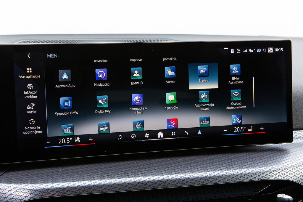 za najpogosteje uporabljane funkcije, vključno s preprostim dostopom do izklopa zvočnih opozoril. Kljub temu jih je precej razporejenih po številnih podmenijih, ki so z velikimi ikonami v stilu tablice pri stoječem vozilu resda jasni in pregledni, med vožnjo pa je precej bolj uporabna možnost vmesnika v obliki vrtljivega gumba. V primerjavi s tekmeci je arhitektura z na vrhu armaturne plošče nasajenim zaslonom resda nekaj manj imenitna, zato pa so materiali in izdelava na resnično visoki