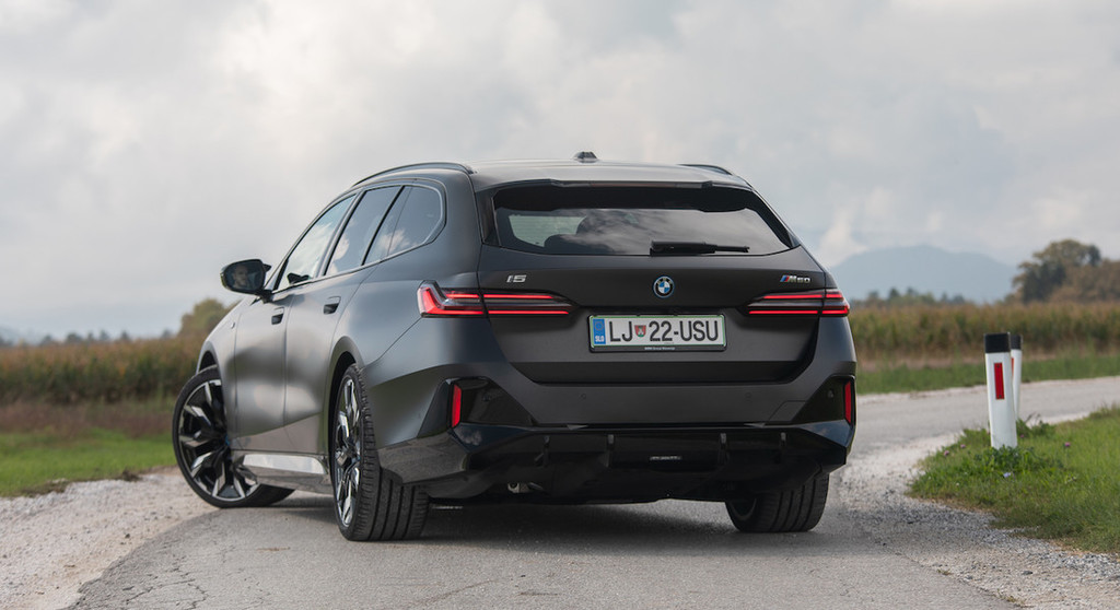 noge na zadnjih sedežih ne zmanjka kar takoj, velik je tudi prtljažnik. Ta v osnovi meri 570 litrov, kar je natanko toliko kot pri običajni karavanski seriji 5 in celo 70 litrov več, kot jih ponuja novi M5. Slednji mora prostor žrtvovati na račun »dvojnega« priključnohibridnega pogona, i5 M60 pa prtljažnik pusti nespremenjen tudi z vgrajeno baterijo kapacitete 83,9 kWh. No ja, glede na velikost avtomobila bi bila ta zlahka večja, saj tekmeci redno presegajo tudi mejo 100 kWh, a BMW tu išče