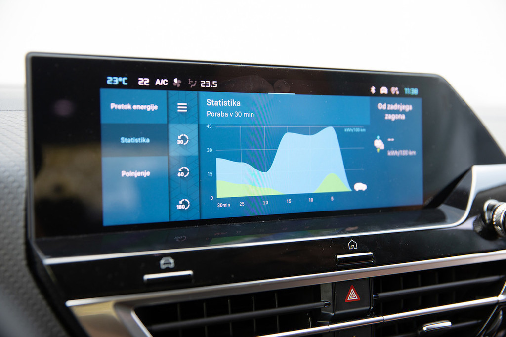 zelo zmerni vožnji morda dovolj za preseganje meje 300 kilometrov, avtocesta pa številko krepko zmanjša. To smo ugotovili med vožnjo, ki je le redko dosegla omejitev 130 km/h, pa se je baterija kljub temu z 80 odstotkov na skoraj nič izpraznila že po 200 kilometrih. Ob tem velja omeniti, da je bilo zadnjih 100 kilometrov prevoženih z varčnimi 100–110 km/h. Računica je preprosta in povezana z velikostjo baterijskega sklopa ter aerodinamičnimi zakonitostmi. Morda si lahko več obetamo od