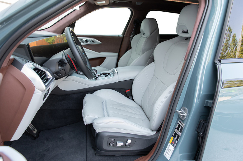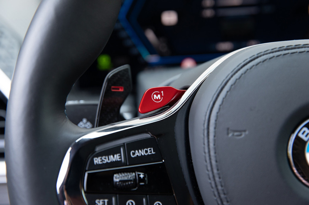 Ko odprem vrata, mi postane takoj jasno, da tu nad športnostjo prevladuje razkošje. To se kaže z dvobarvno kombinacijo mehkega usnja, ki prekriva skoraj vse, česar se lahko dotaknemo. Še najbolj »klasičen« je voznikov delovni prostor s postavitvijo, ki smo jo videli že pri drugih novejših BMW-jevih modelih. To pomeni, da ima glavno vlogo ukrivljen vodoravni panel, ki gosti dva barvna zaslona, medtem ko sta volanski obroč in sredinska konzola s klasično prestavno ročico enaki kot pri drugih M