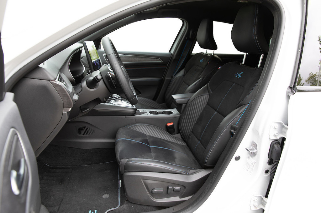odmislimo malenkost ožjo kabino (conquest je v resnici podaljšan captur), je notranjost presenetljivo prostorna. Tudi spuščanje strehe nima prav velikega vpliva na prostor za glave potnikov v drugi vrsti, nenavadni kombilimuzinski zaključek karoserije pa pomeni, da ima nadpovprečno velik prtljažni prostor, ki v osnovi meri kar 513 litrov. A bolj kot to preseneča občutek kakovosti in celo prestiža, ki ga v celoti pripisujemo najvišji stopnji opreme. Del paketa esprit alpine so v kombinacijo