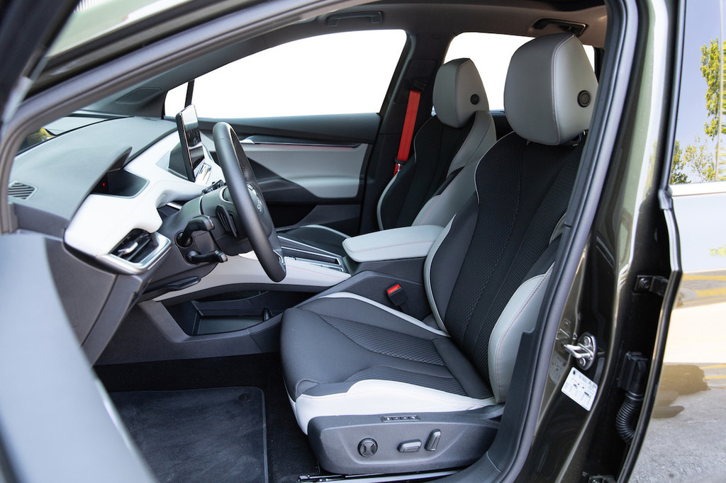 ureditve kabine s poudarkom na recikliranih materialih. Testni avtomobil je bil opremljen s slogom lodge s privlačno kontrastno barvno kombinacijo z oranžnimi detajli. Udoben položaj za volanom se zlahka najde, splošna ergonomija je dobra, a vseeno bi si namesto upravljanja prek zaslona in drsnikov pod njim želeli več fizičnih gumbov in stikal. V drugi vrsti je prostora na pretek, pri čemer višjerasle potnike lahko zmoti razmeroma visok pod in posledično visok položaj kolen. Prtljažnik
