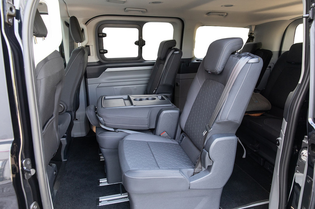 in tako zlahka prostor optimizirate potrebam potnikov in prtljage. Razpoložljivega prostora ob odstranjenih sedežih Ford ne navaja; za orientacijo vzemimo tovorni prostor tovornega ekvivalenta transita custom – 5,8 kubičnega metra.