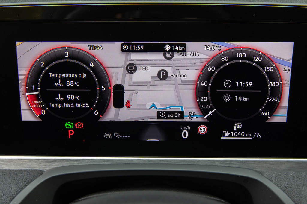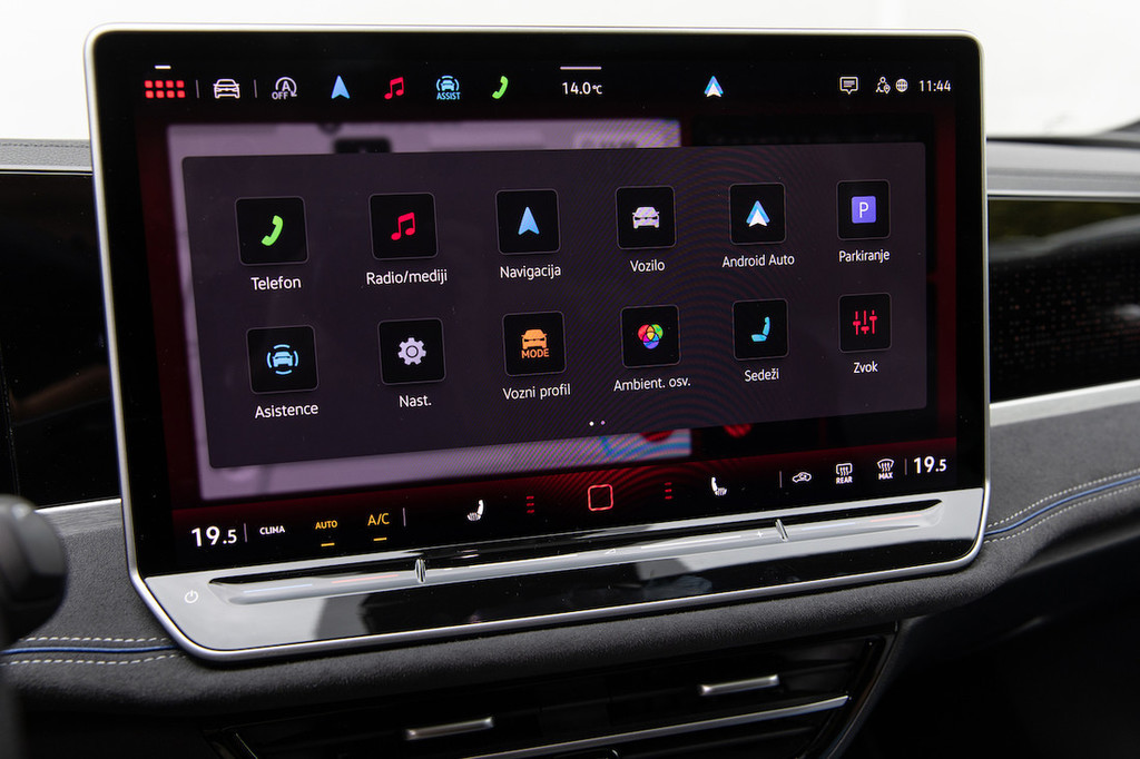 Zato pa sta izbira materialov in izdelava na visoki kakovostni ravni, počutje kot celota za odtenek prijetnejše kot v škodi (pa tudi kot v mercedesu, na primer), zaslon infotainmenta premera 38,1 centimetra (doplačilni discover pro max, ima tudi sistem HUD in glasovno asistenco) pa se ponaša z zadnjo generacijo operacijskega sistema. To pomeni ostro in čisto grafiko, logično razporejene menije s priročnimi bližnjicami na zgornjem robu ter solidno odzivnost in naravnost brezhibno povezljivost,