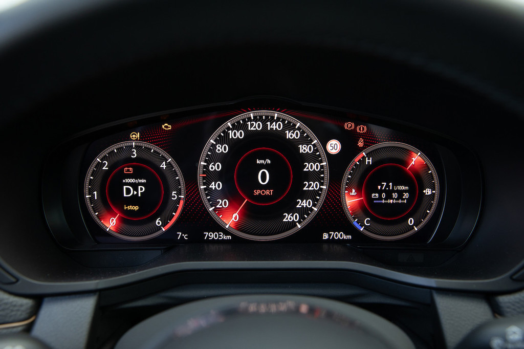 goriva in zraka, k varčnosti pa gotovo prispeva tudi 24-voltni blagohibridni sistem z elektromotorjem z močjo 12,4 kW in baterijo s kapaciteto 0,33 kWh. Na prvem testu smo dosegli povprečno porabo 6,8 litra na 100 kilometrov, medtem ko se je tokrat ta z nekaj več mestnimi vožnjami ustalila pri še vedno zelo sprejemljivih 7,1 litra.