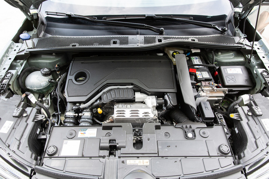 Pred voznikom vlogo merilnikov opravlja zaslon premera 17,8 centimetra, ki med drugim tudi grafično zelo pregledno prikazuje delovanje blagohibridnega pogonskega sklopa – gre za kombinacijo prisilno polnjenega 1,2-litrskega bencinskega trivaljnika in elektromotorja s skupno močjo 107 kW (145 KM), ki glede zmogljivosti ne pušča odprtih želja, obenem pa se električna podpora skupaj s šeststopenjskim samodejnim menjalnikom lepo vklaplja v celotno pogonsko shemo. S svojimi 55 Nm navora prispeva k bolj tekoči vožnji, obenem pa z rekuperacijo pri zaviranju sproščene energije tudi k dobršnemu delu vožnje brez delovanja bencinskega motorja (speljevanje, zaviranje, vožnja po klancu navzdol pri zmernih hitrostih …) in s tem pod črto k manjši porabi goriva.