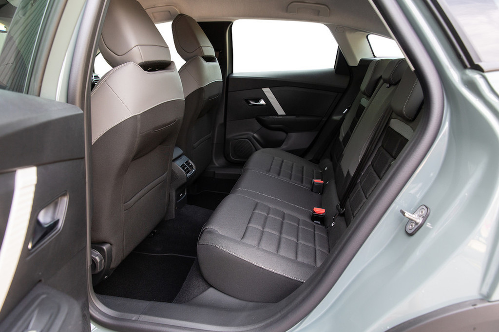 S prostorskega vidika se umešča nekje v povprečje razreda, kar pomeni dovolj prostora tako na sprednjih kot tudi zadnjih sedežih, padajoča strešna linija pa bolj kot prostornost krni preglednost nazaj, k čemur svoje dodaja tudi spojler prek zadnjega stekla. To zadrego uspešno rešijo parkirna tipala in kamera za pomoč pri vzvratni vožnji, pa tudi sicer je avtomobil založen s številnimi dobro delujočimi asistenčnimi sistemi in varnostnimi pripomočki – njihovo delovanje (opozorilo na prekoračitev hitrosti, pomočnik za vožnjo po svojem pasu) lahko prek namenskega stikala preprosto prilagodite svojim željam oziroma jih izklopite. K dobri ergonomiji svoje dodajajo trije veliki okrogli gumbi in dodatna stikala za upravljanje klimatske naprave, tudi glasnost radia upravljate analogno – z vrtljivim gumbom, kar je precej bolj praktično od tekmecev, ki imajo v ta namen na dotik občutljive drsnike ali pa v njih omenjene funkcije upravljate prek osrednjega zaslona. Ta pri C4 meri 25,4 centimetra in služi solidnemu infotainmentu z brezžičnima povezavama android in apple, tu sta še dve vtičnici USB – ena klasična A (še ena je zadaj) in ena sodobna C.