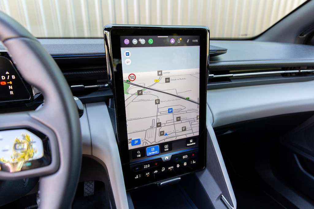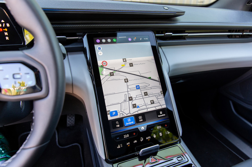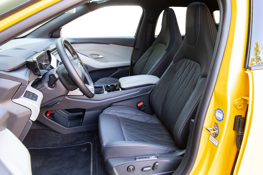 predmetov, saj se ob zaklepanju vozila zaklene tudi mehanizem za pomik zaslona. Zanimiv element predstavlja na vrh armaturne plošče nameščena zvočna letvica proizvajalca B&O, ki ima ob zagotavljanju vrhunskega zvoka tudi estetsko funkcijo. Zahvaljujoč tem elementov notranjost deluje privlačneje in prijetneje kot pri Volkswagnovi liniji ID. Prav tako nimamo pripomb nad prostornostjo. V drugi vrsti je dovolj prostora v vse smeri, pri čemer lahko višjerasle zmoti razmeroma visok pod in