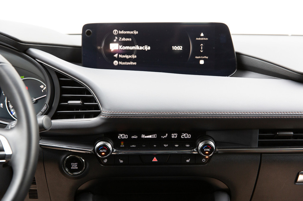 Seveda ima atmosferski motor tudi ob takšni prostornini svoje danosti in ob priganjanju ne ponuja turbo sunka, ampak zmerno pospeševanje ob vse večjem tuljenju motorja. A e-skyactiv G140 je vstopni motor, namenjen zmernim voznikom. V prid varčnosti je motor podprt s 24-voltno blagohibridno tehnologijo, za povrh pa še z možnostjo samodejnega izklopa dveh valjev. Tega med vožnjo nismo zaznali, saj se to zgodi le v trenutkih majhne obremenitve, za gladke prehode v primeru hipne potrebe po večji zmogljivosti pa tako ali tako skrbi majhen elektromotor. Prihranki pri porabi v primerjavi z dvolitrskim strojem niso ogromni, a smo razliko vseeno zaznali tudi na našem testu, ko smo z različico s samodejnim menjalnikom zabeležili približno tri decilitre nižje povprečje kot pri limuzinski izvedbi G122 z ročnim menjalnikom pred letom in pol.