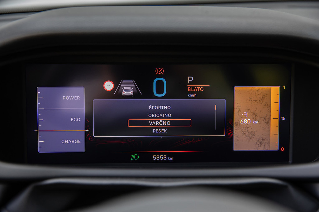 Smo pa od blagohibridnega sklopa, ki ga na avtomobilu označuje zeleni ”e” na prtljažnih vratih, pričakovali večjo učinkovitost pri porabi goriva. Z elektriko podprti avenger je v mestu od nas zahteval okoli 8,5 litra, na avtocesti dobrih 7 litrov, v povprečju pa 6,7 litra na 100 prevoženih kilometrov. To res ni rekordno malo, a zato so poleg rahlo privzdignjenega položaja in oblike karoserije kriva tudi velika 18-palčna kolesa. Toda to ni avtomobil, za katerega bi se odločili iz varčnih